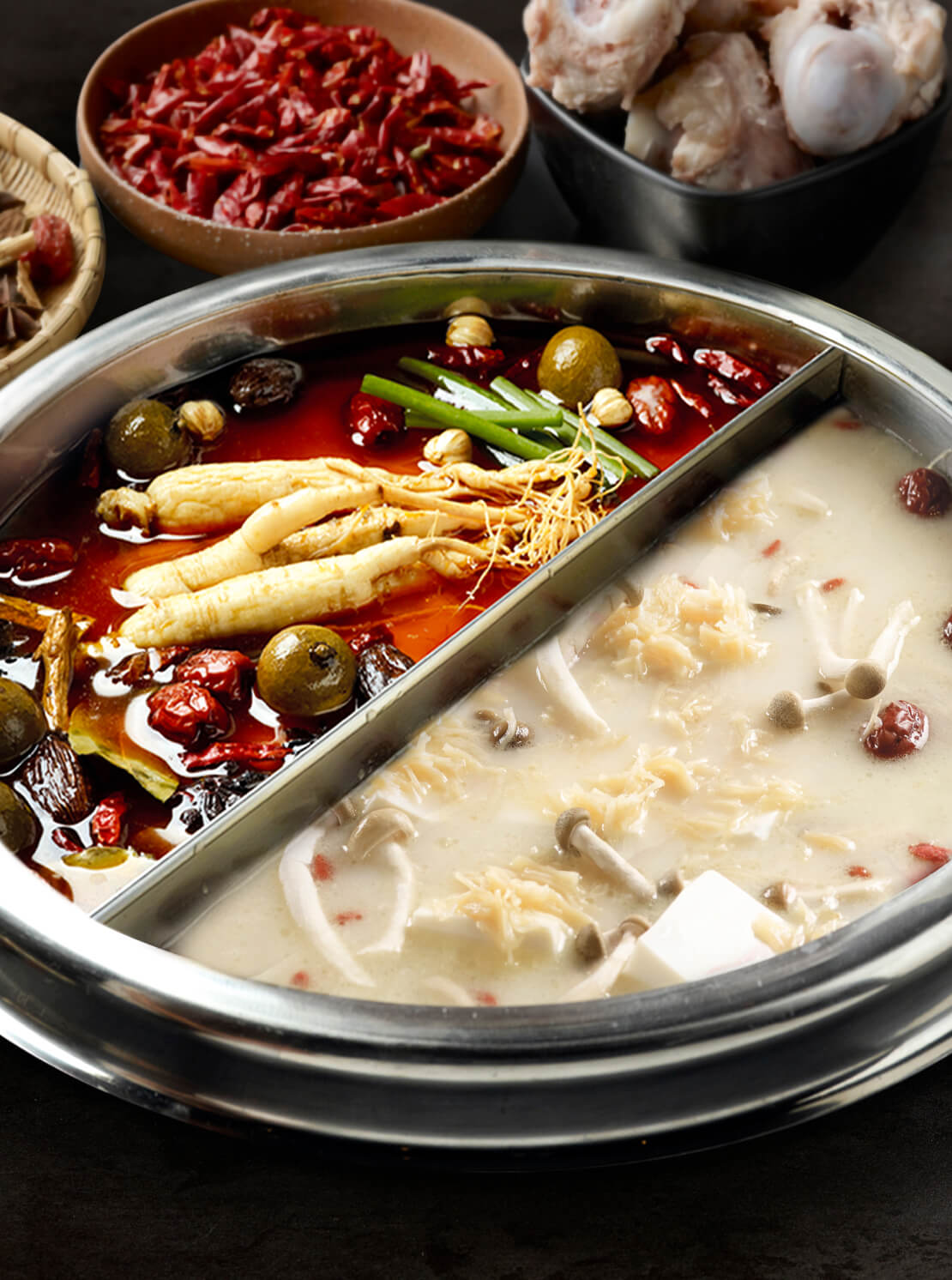 Believing in the utmost importance of soup base for the best enjoyment of hotpot, the culinary team is persistent in the use of fresh ingredients and devotes hours of meticulous attention to the creation of each broth daily. An extensive menu of fresh ingredients and homemade specialties are also specially selected to provide our diners with only the best.